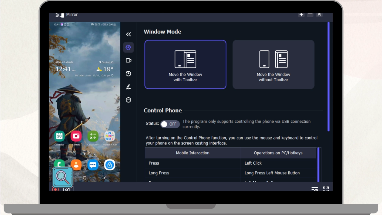 Once connected, you can control your phone with your computer’s mouse and keyboard, take screenshots, and record videos of your phone’s screen, saving them directly to your computer. This Makes it easy and Enjoyable to use your Phone on a Bigger Screen.