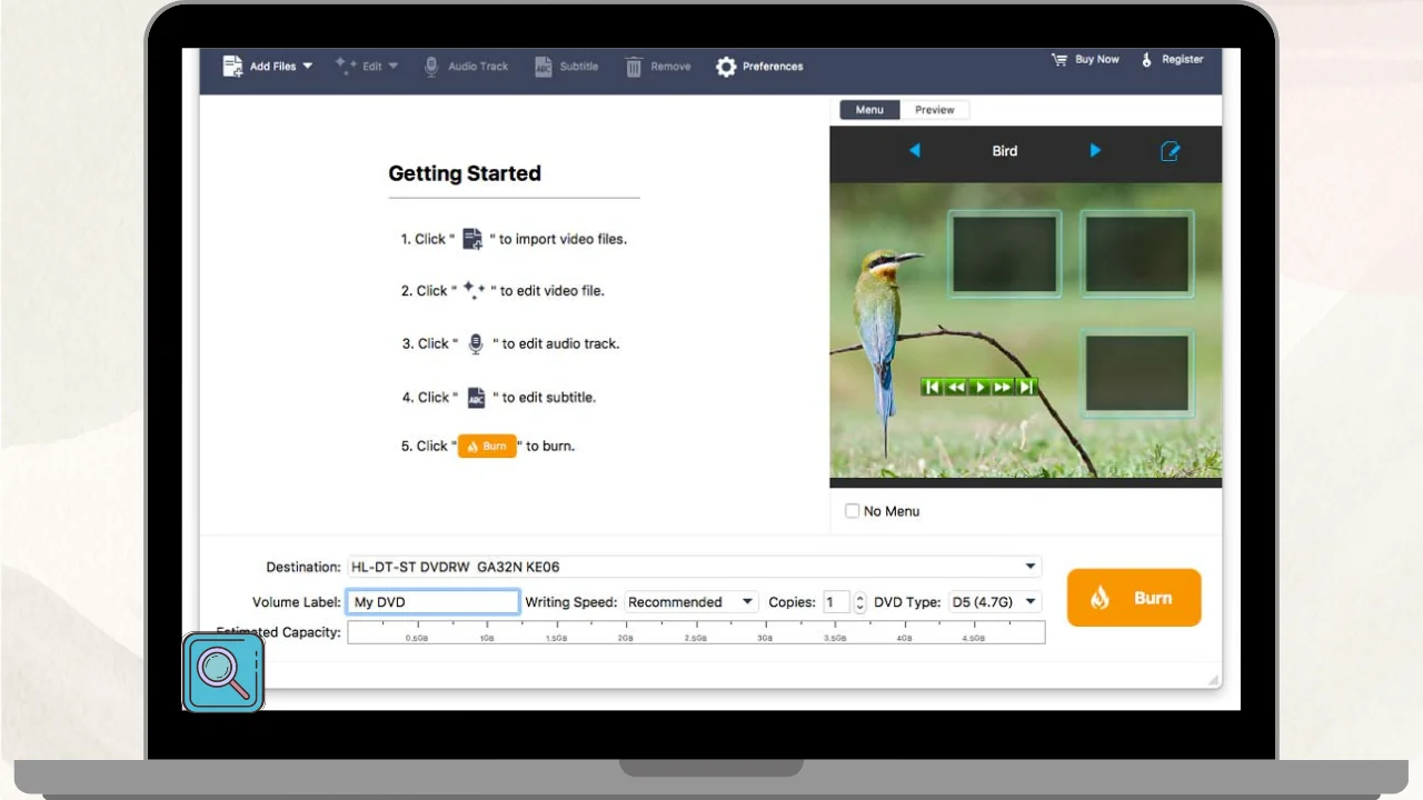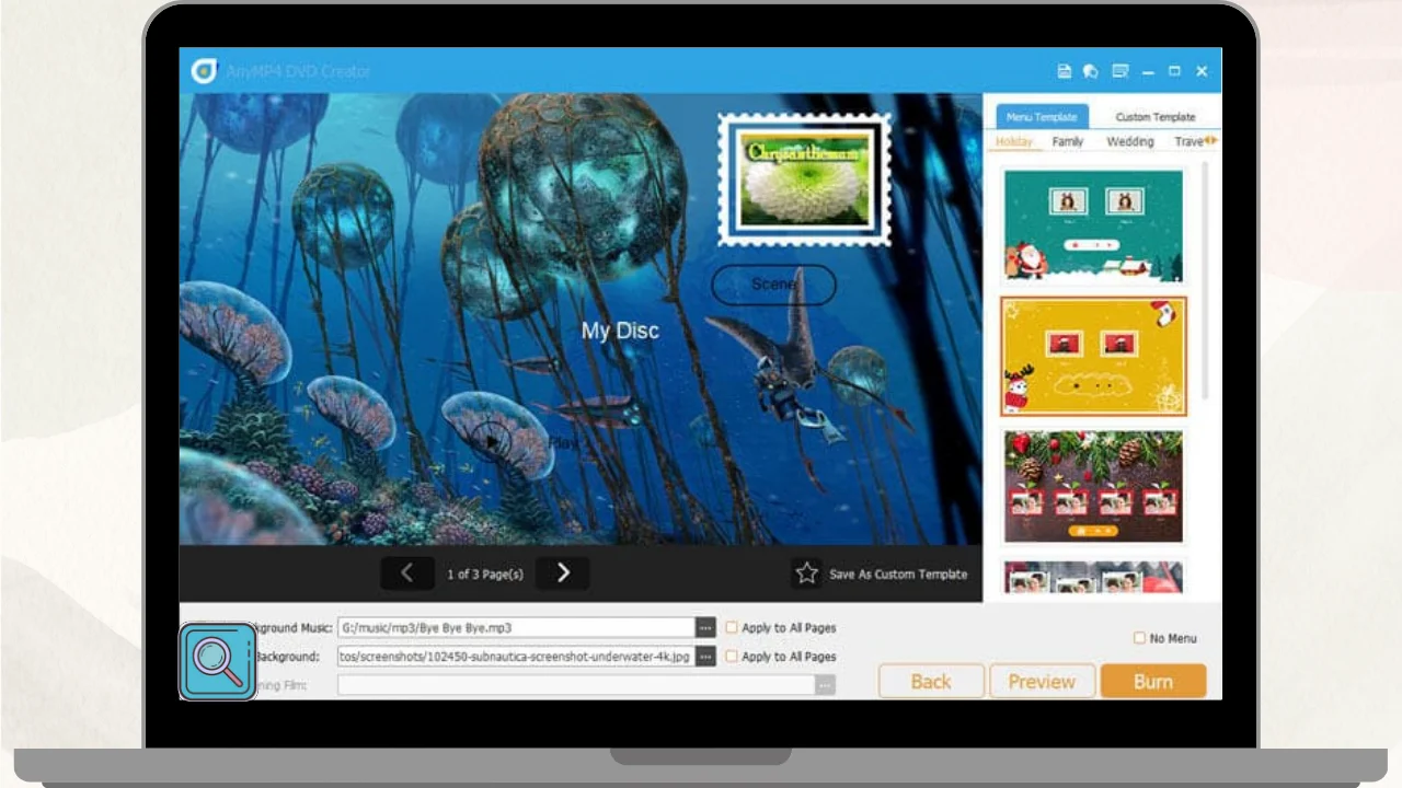 Menu Templates: Choose from various stylish menu designs to personalize your DVD.