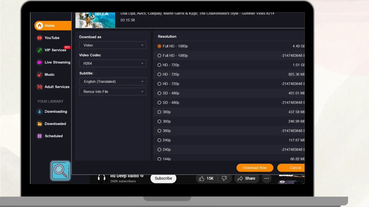 Quality Choices: Choose video quality and format for downloads.